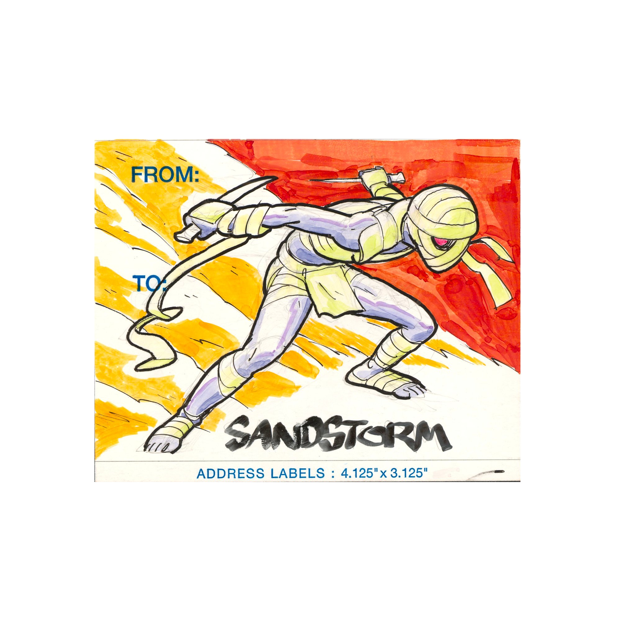 4.1 x 3.1 Original art address sticker. Some kind of Crypt ghoul, possibly awoken by an archeologist. Made with Copic markers and Micron pens.
