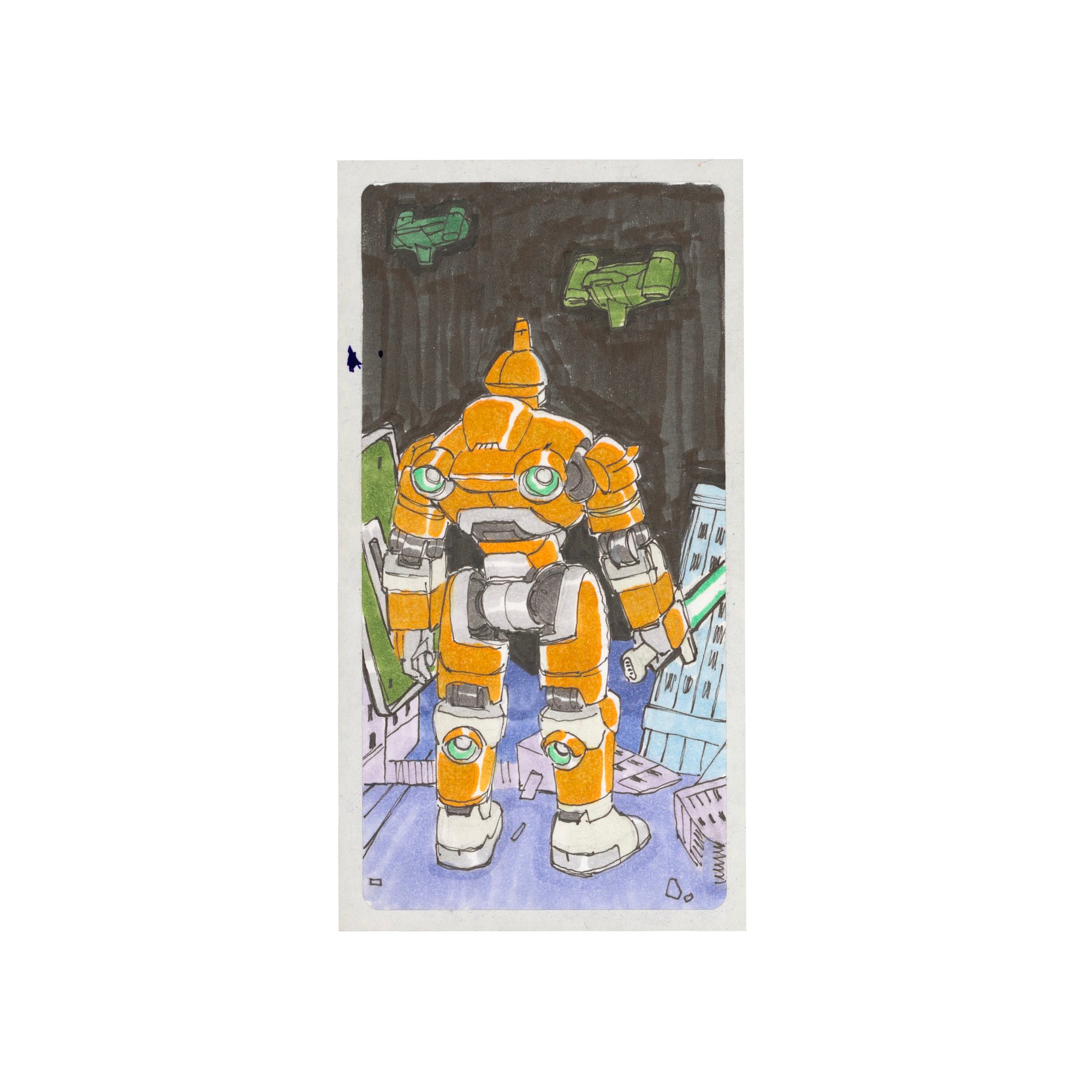 2x4 Original art adhesive sticker. Made with Copic markers and Micron pens. "We did it! We saved the city!"